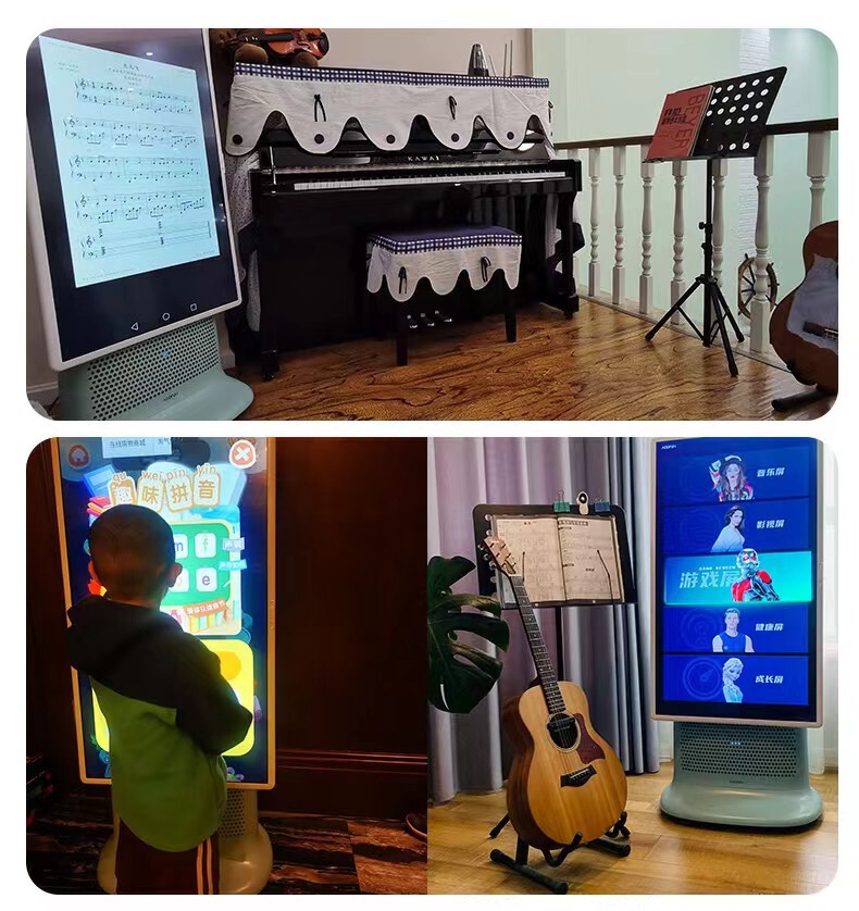 2、場景的移動與切換:大多數(shù)一體機強調(diào)自身可配備升降旋轉(zhuǎn)支架、萬向輪底座。這意味著其可以滿足兒童房、客廳、書房等不同場景下的學(xué)習(xí)需求。