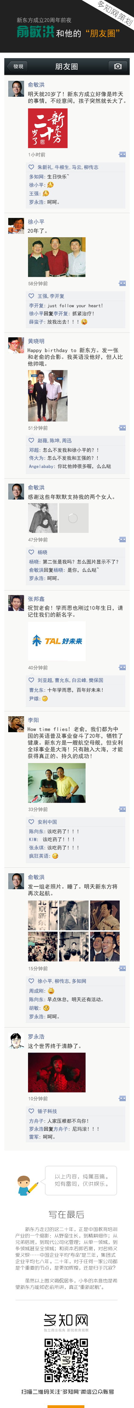 明天是新東方教育集團成立20周年,在這個特殊的時刻,俞敏洪和他的微信朋友圈里,可能出現(xiàn)哪些有意思的場景呢?