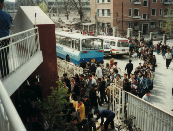 新東方總部搬到中關(guān)村禮堂,開始到了百人大課時代。圖中這種出現(xiàn)在90年代電視劇《渴望》中的藍(lán)色公交車又是什么時候消失的呢?