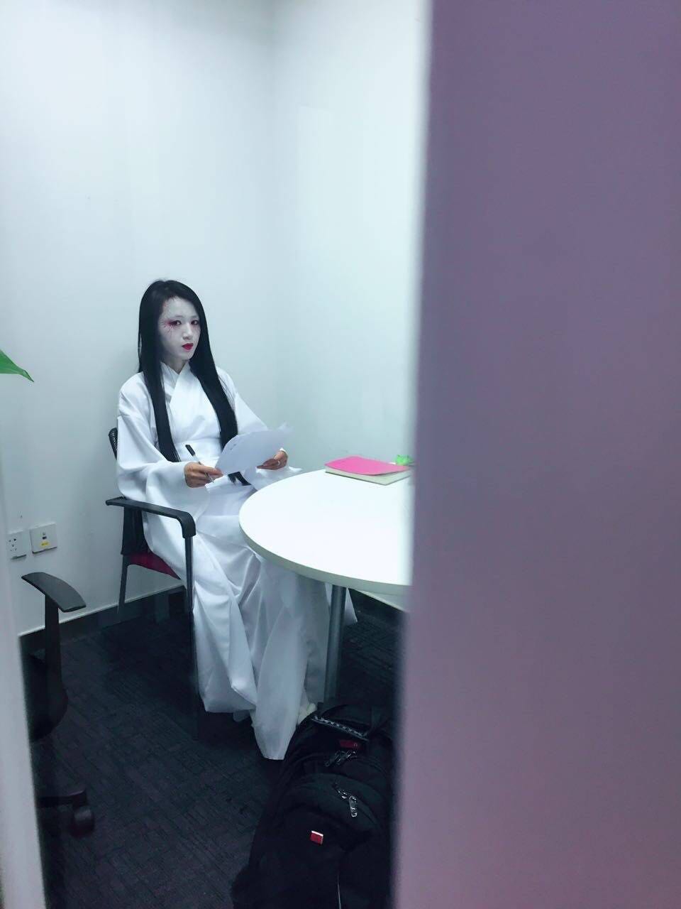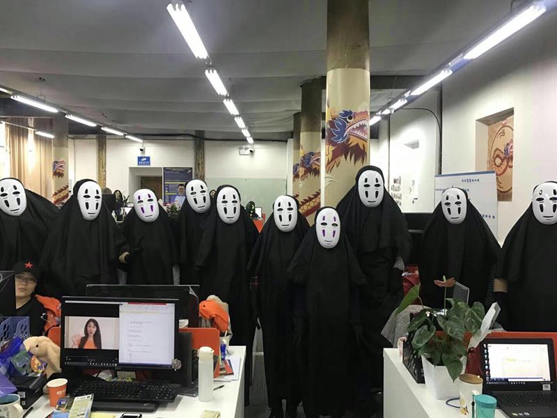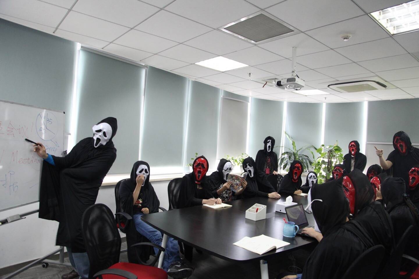滬江網(wǎng)的員工以此扮相開會(huì),實(shí)在對(duì)他們討論的內(nèi)容表示十分懷疑,細(xì)看起來左邊還有兩個(gè)鬼正在看漫畫,深刻詮釋“做鬼也風(fēng)流”。