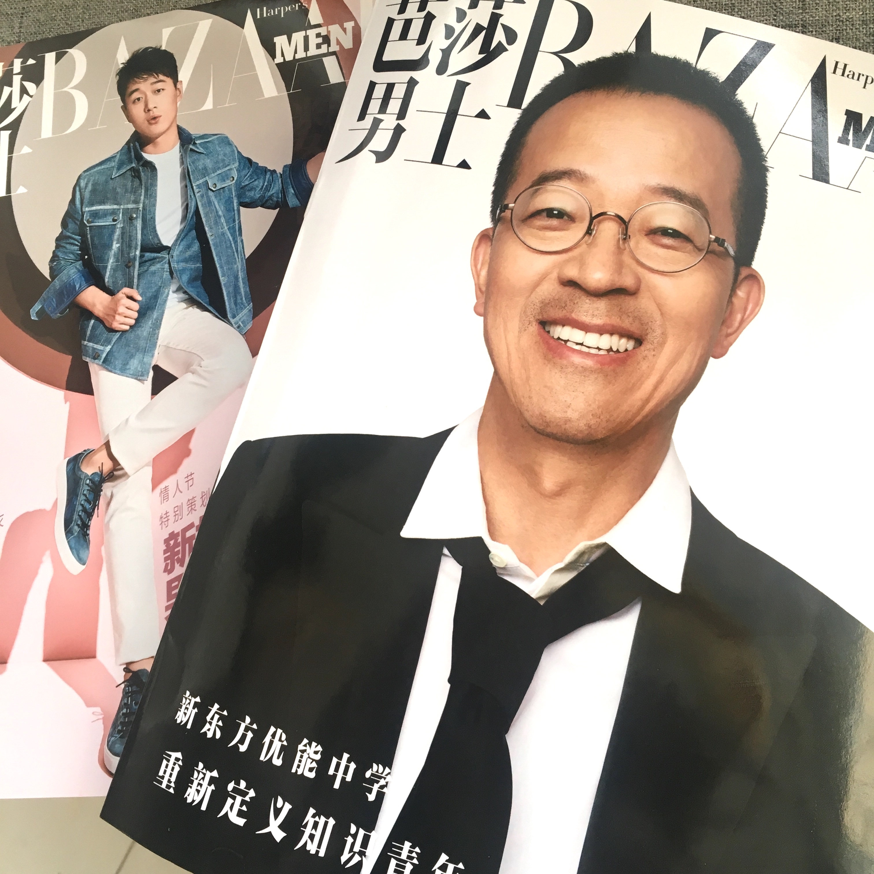2月刊的《芭莎男士》已經(jīng)擺上了書攤,一張熟悉的面孔在其副刊封面上——俞敏洪,黑白色系,西裝革履,還帶著簡單的造型與妝發(fā)。 “新東方優(yōu)能中學(xué)重新定義知識青年”——是封面的主題。