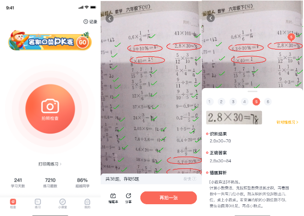 “小學(xué)口算”APP主要通過(guò)人工智能圖像識(shí)別技術(shù)來(lái)完成對(duì)孩子作業(yè)的檢查,根據(jù)家長(zhǎng)和老師拍的口算作業(yè),系統(tǒng)能夠自動(dòng)掃描所有題目及答案,智能生成檢查報(bào)告,并且提供錯(cuò)題答案和解析。目前,“小學(xué)口算”的用戶(hù)平均每天拍照批改作業(yè)5次以上,APP每月批改的題目累計(jì)超3億道。