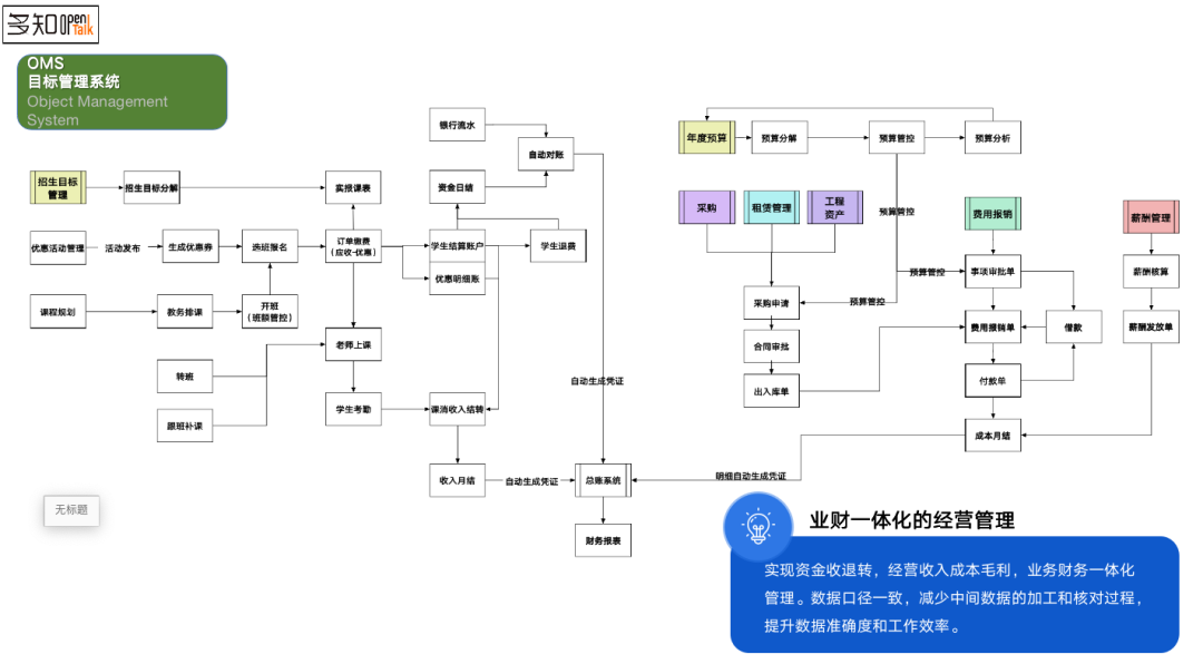 我們還有預(yù)算管理,把預(yù)算進(jìn)行分解,分解到各個(gè)環(huán)節(jié)以后,我們有教材的管理、租賃的管理、人力薪酬的管理和費(fèi)用包銷(xiāo)、工程裝修資產(chǎn)的管理,這些都會(huì)生成相關(guān)的憑證到財(cái)務(wù),就實(shí)現(xiàn)了財(cái)務(wù)一體化,減少中間的加工環(huán)節(jié),提高數(shù)據(jù)的精準(zhǔn)度。