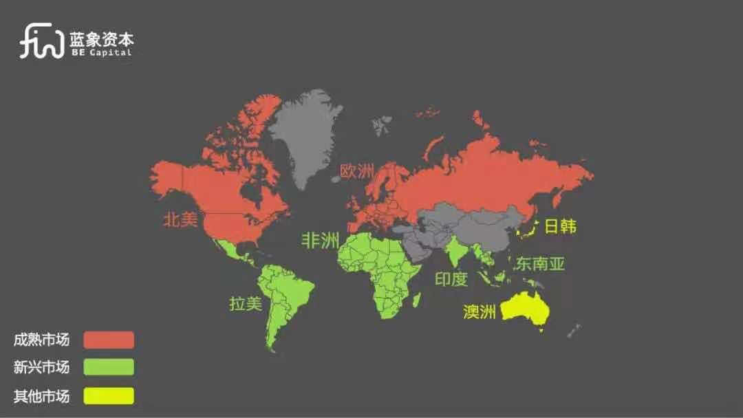 我們試著將全球主流市場劃分成了3類: