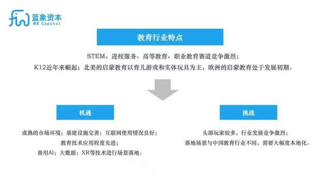 當下,隨著國內市場進入了一輪政策性調整,教育創(chuàng)業(yè)者該如何充分挖掘和把握出海的機會?不妨來看看藍象資本投資副總裁焦念韜近期的思考。