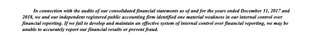盡管其已經(jīng)實(shí)施并正在繼續(xù)實(shí)施一系列措施,以彌補(bǔ)這一重大缺陷和其他控制缺陷,但如跟誰學(xué)在招股書中所說:“如果我們未能建立并維持有效的財務(wù)報告內(nèi)部控制系統(tǒng),我們可能無法準(zhǔn)確報告我們的財務(wù)業(yè)績或防止欺詐?!?/span>