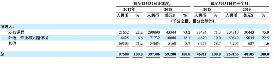 值得注意的是,如招股書數(shù)據(jù)顯示,跟誰學(xué)的核心專長是在線K12課程,在2018年的總賬單方面,K12課程涵蓋所有小學(xué)和中學(xué),并分別在2018年和截至2019年3月31日的三個月中占總收入的73.2%和75.9%。