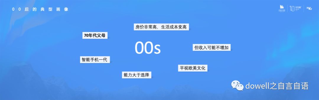 00后也開(kāi)始陸續(xù)進(jìn)入了工作階段,這是第一代玩著智能手機(jī)長(zhǎng)大的一代,家長(zhǎng)為70年代的父母,出生以后生活相比其他代際更加優(yōu)越,更重視本土的文化。也許這一代人尤其長(zhǎng)在大城市的一代人買房不一定是必須的選擇,租房也是一個(gè)可以接受的選擇,因?yàn)榉績(jī)r(jià)已經(jīng)變得相當(dāng)?shù)母?。由于高額房租或者房貸的這些的存在導(dǎo)致了生活成本的增加,他們工作以后也許會(huì)更加注重花錢(qián)的效率。