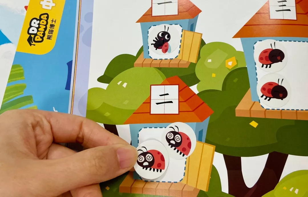 第三,熊貓博士的繪本里設(shè)計了許多動手部分。在繪本結(jié)尾的部分,熊貓博士設(shè)計了一些閱讀理解的問題,和一些小貼紙等等。讓孩子通過動手把漢字記得更牢,理解更深入。