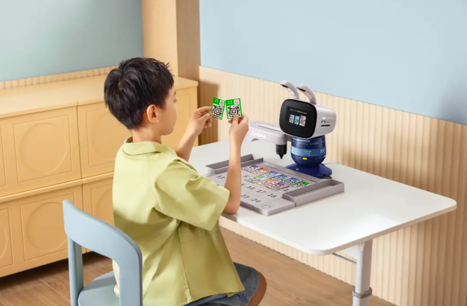 “(我們配備有)一張張小卡片,孩子可以跟著機(jī)器人的提示,將卡片擺放在棋盤上,進(jìn)而指揮機(jī)器人完成一系列特定的指令動作。實體卡片意味著,孩子不需要盯著屏幕,只要擺在棋盤上,就可以既鍛煉邏輯訓(xùn)練,又呵護(hù)眼睛。機(jī)器人會根據(jù)指令教孩子,從簡單的怎么讓機(jī)器人揮揮手到復(fù)雜的組合式編程。零基礎(chǔ)的孩子只要跟著做,也能輕松上手。同時我們還有數(shù)字+語音的雙校驗。孩子將卡片擺放到棋盤后,機(jī)器人就會識別不同的指令,告訴孩子正確與否,孩子慢慢就能在過程中培養(yǎng)出編程的思維。”閆雪具體闡釋了該功能。