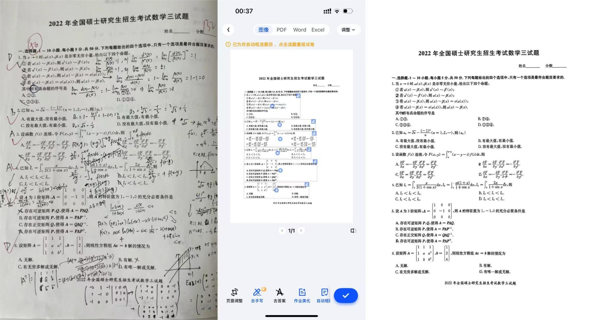 (夸克掃描王對(duì)手寫(xiě)試卷進(jìn)行掃描效果,圖片來(lái)源自社交平臺(tái))