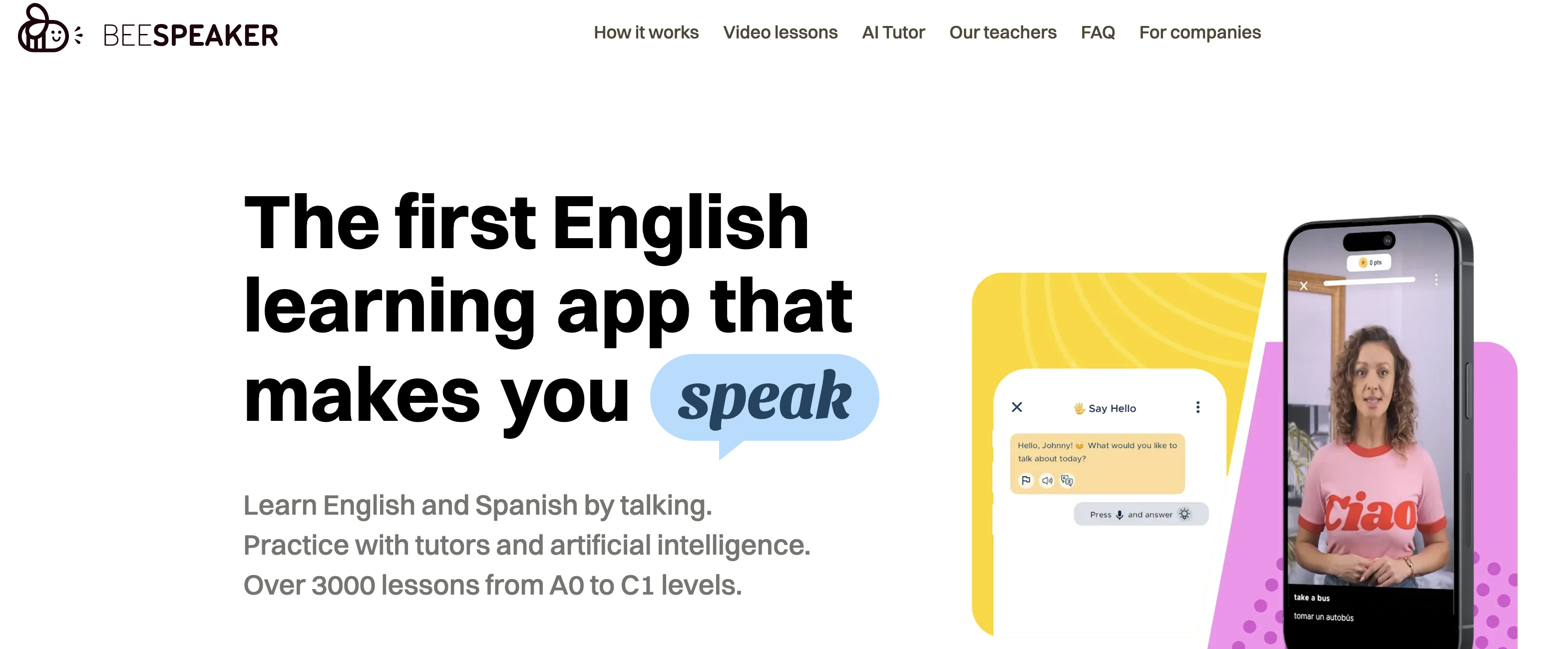 BeeSpeaker 就像一位私人導(dǎo)師,先播放母語人士的短視頻,然后進(jìn)行口語練習(xí)。每個練習(xí)都要求用戶大聲朗讀,AI 會評估發(fā)音,進(jìn)行對話式回復(fù),并根據(jù)每個學(xué)習(xí)者的進(jìn)度調(diào)整難度。最終,用戶只需花費一小部分費用,就能獲得輔導(dǎo)級的口語練習(xí)。