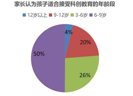 半數(shù)家長(zhǎng)認(rèn)為在孩子小學(xué)階段更適合開始接受科創(chuàng)教育。