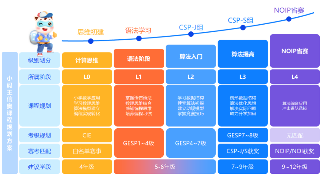 此外,CCF于2025年2月13日發(fā)布年齡要求,“報名參加CSP-J/S的被認(rèn)證者需在當(dāng)年9月1日(不含)需滿12周歲”,小碼王信奧課程規(guī)劃契合該要求。