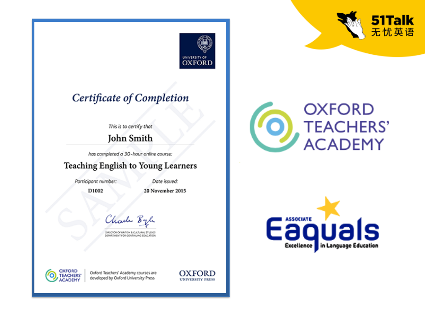 51Talk的付費(fèi)課之后還有單元測試、級別測試并頒發(fā)證書。這個(gè)證書相對來說比較權(quán)威,我們跟第三方機(jī)構(gòu)合作,讓第三方機(jī)構(gòu)出題,最后給孩子出一個(gè)成績評定結(jié)果。